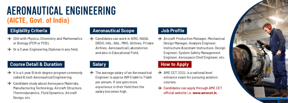 After completing the Aeronautical Engineering course a candidate will be ready to work in any industry work on aircraft, missile, spacecraft, drone etc.